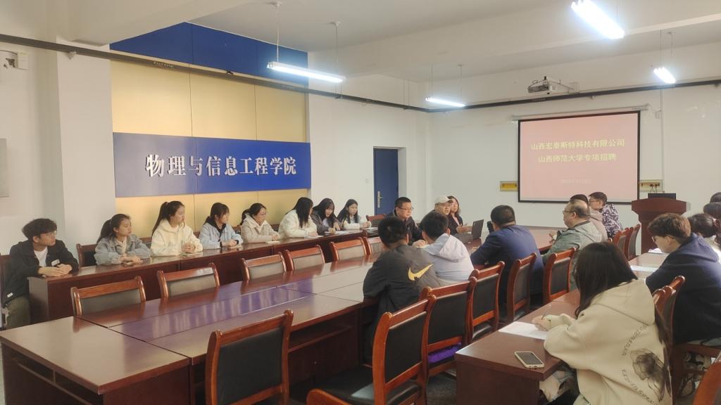 为进一步深入落实学校“访企拓岗促就业”系列文件精神,4月9日上午,黄色漫画 与山西宏泰斯特科技有限公司在实验楼S202举行就业座谈会。院党委副书记颜志刚、山西宏泰斯特科技有限公司经理朱正洋一行出席会议。电子系主任王大为主持会议。