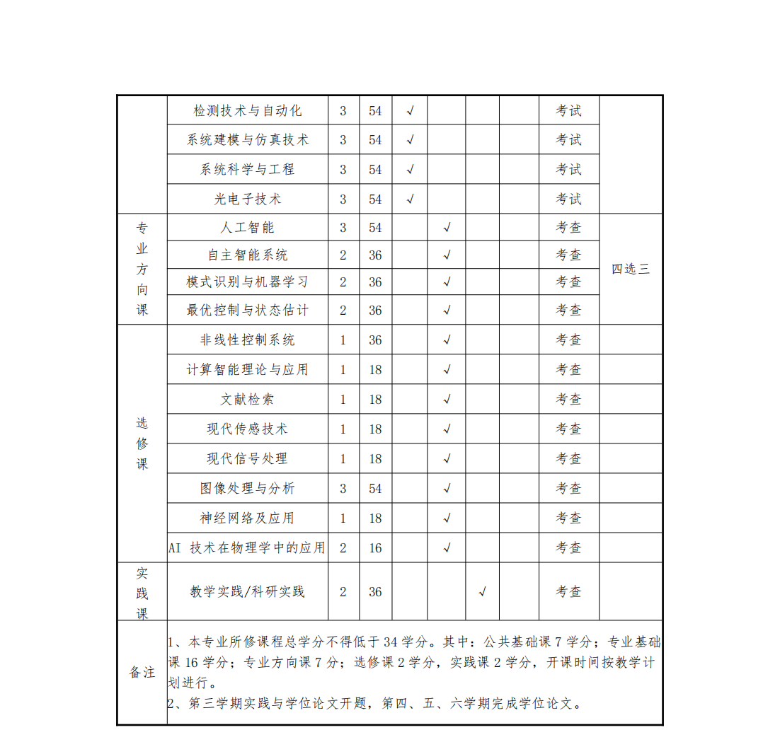 硕士研究生课程分为公共基础课、专业基础课、专业方向课及专业选修课。学术学位硕士研究生须修满34-36学分,硕士研究生课程学习一般应在入学后1学年内完成,特殊情况下不超过一年半。
