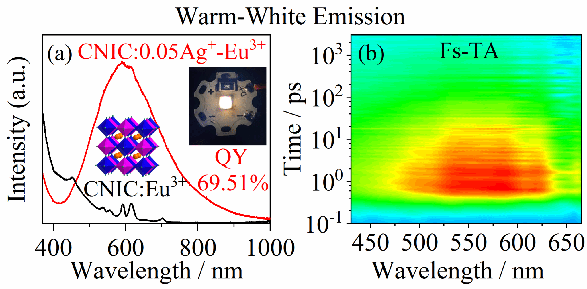 图1. 银-铕共掺杂纳米晶的暖白色发光