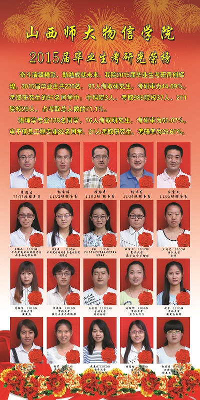 奋斗演绎精彩,勤勉成就未来,黄色漫画 2015届毕业生考研再创辉煌。2015届毕业生共220名,97人考取研究生,考研率为44.09%。考取研究生的97名同学中:中科院3人、考取985院校37人、211院校29人,占考取总人数的71.1%。