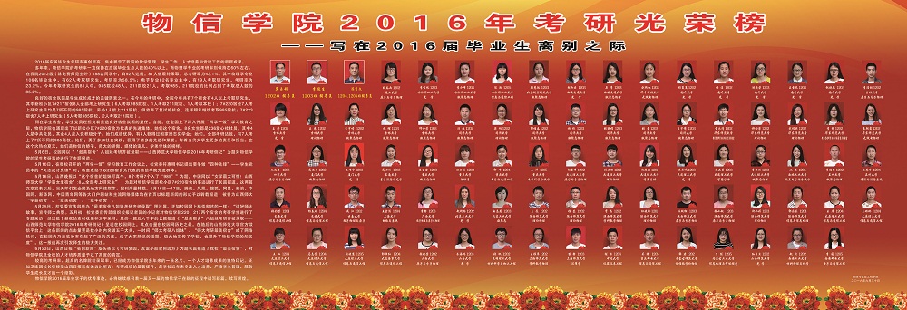 物信学院2016届毕业学子的优秀事迹,必将继续感召着一届又一届的物信学子在新的征程中谱写新篇,续写辉煌。