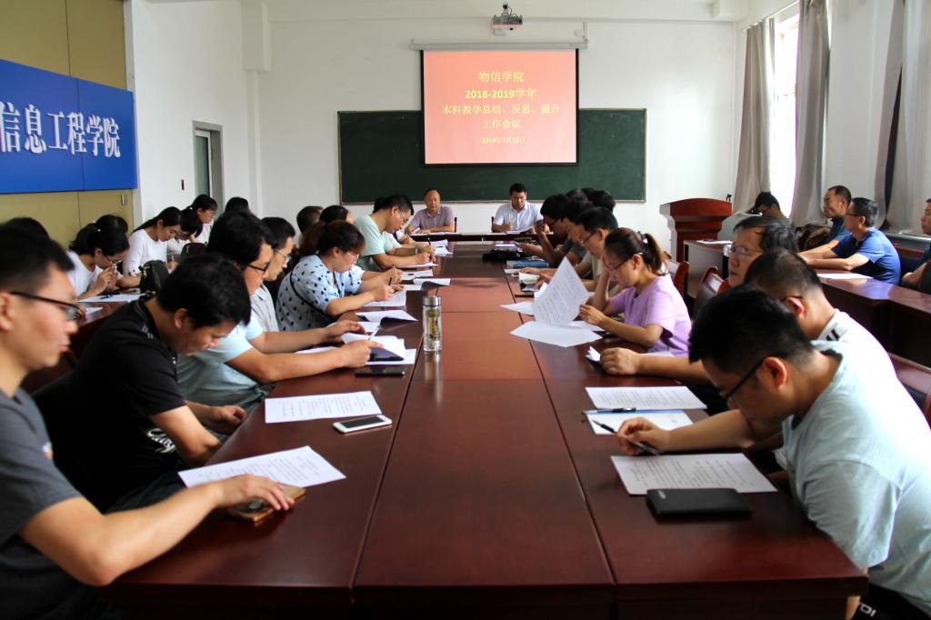 2019年7月10日上午10:00,黄色漫画 在四号楼二层多功能会议室召开了物信学院2018-2019学年本科教学“总结、反思、提升”工作会议,全面部署为期一周的本科教学“总结、反思、提升”大讨论活动,全体教职工参加了会议。会议由院长张进军教授主持。