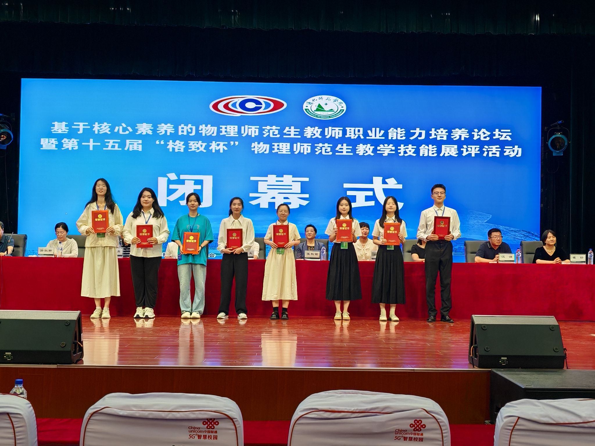 据悉,“格致杯”物理师范生教学技能展评活动是全国高水平的大学生物理教学技能比赛,也是全国物理师范专业参赛面最广、影响力最大的比赛。本次比赛共进行了线上、线下教学技能和自制教具比赛,共有来自北京师范大学、华东师范大学、华中师范大学、华南师范大学、南京师范大学、湖南师范大学等全国106所高校的1500余名本科生和研究生参赛。该活动既是物理师范生交流教学技能、切磋教学技艺、相互学习提高的平台,也是高校之间开展学术交流、提高人才培养质量的盛会,对于创新人才培养模式、提高学生综合素质有着积极的促进作用。
