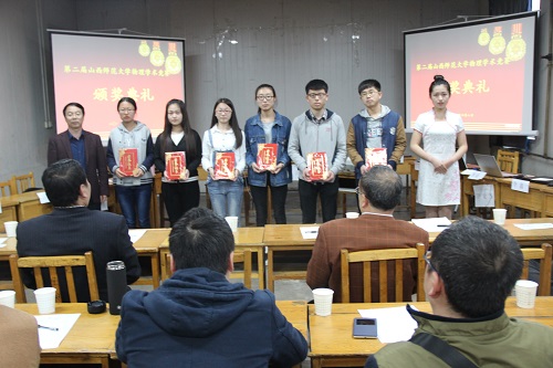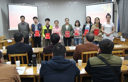 4月8日下午3:30—6:30,第二届大学生物理学术竞赛决赛暨颁奖仪式在03403教室举行。院党委书记吴文国、院长张进军、院党委副书记陈向波、副院长张东海出席决赛现场并为获奖集体和个人颁奖。