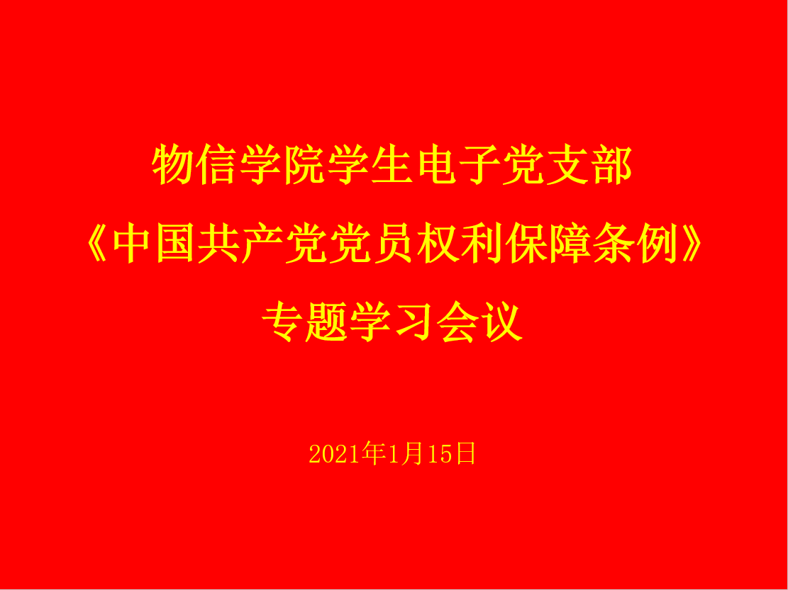 为进一步增强支部党员的责任意识,加强党员队伍建设, 1月15日晚,黄色漫画 学生电子党支部在线上召开了《中国共产党党员权利保障条例》专题学习会议。支部全体党员参加了会议,会议由支部书记卫永霞主持。