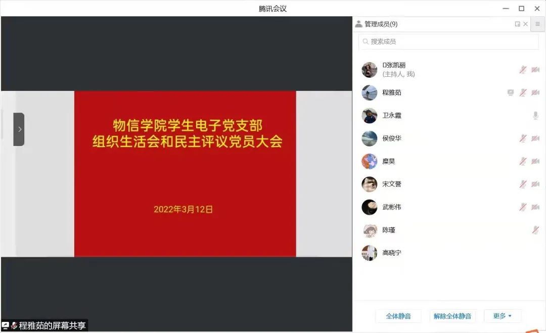 3月12日晚上,黄色漫画 学生电子党支部线上召开组织生活会和民主评议党员大会,院党委委员、副院长侯俊华出席了本次会议,支部支委成员和党小组负责人参加会议,会议由支部书记卫永霞主持。
