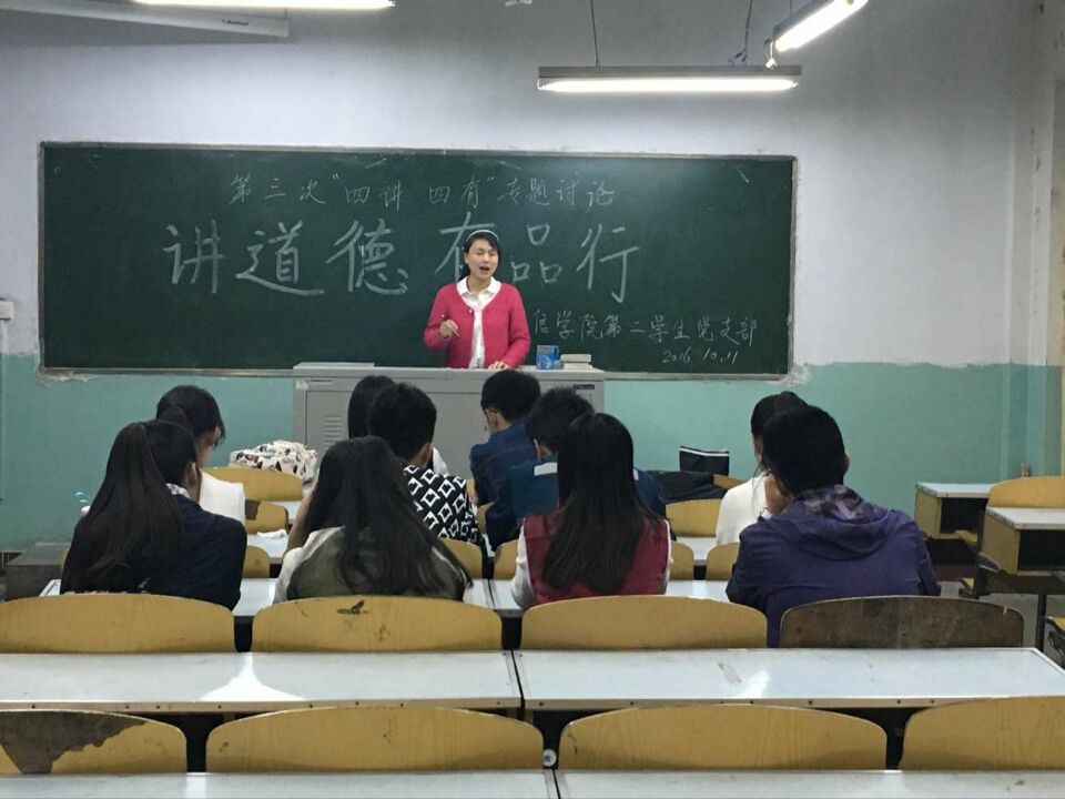 第二学生党支部在四号楼04212教室召开第三次“四讲四有”专题讨论——讲道德,有品行。支部全体党员参加了会议,会议由支部书记崔艳主持。