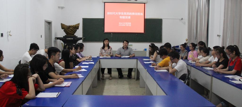 2018年7月5日晚8:30,院党委书记陈向波在四号楼二层会议室为学生236党支部全体党员讲授了题为《新时代大学生党员的责任担当》的专题党课。学生236支部全体党员聆听了党课。