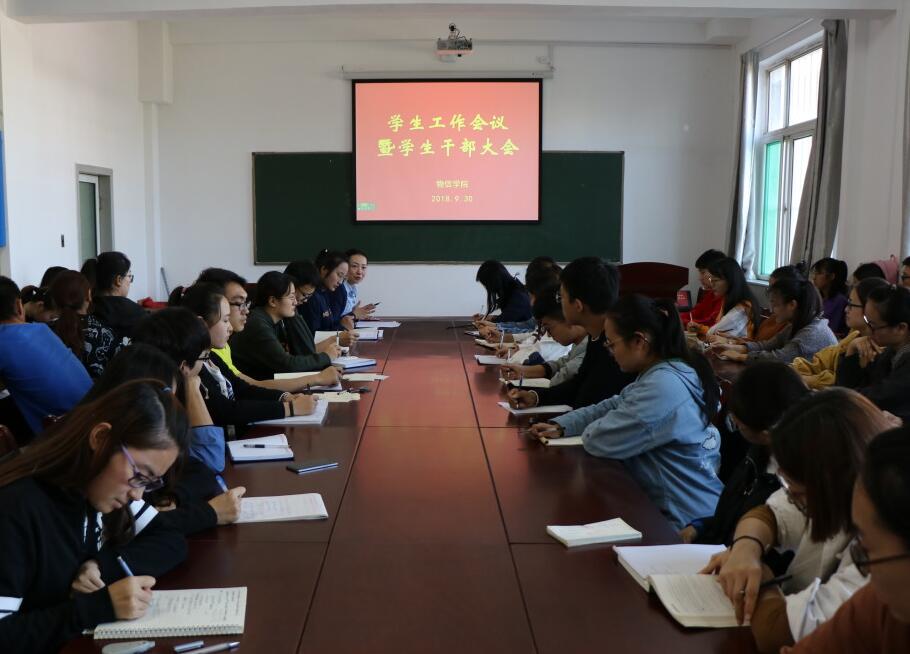 2018年9月30日中午12∶00,黄色漫画 在四号楼二层多功能会议室召开学生工作会议暨学生干部大会。院党委副书记王玮出席会议,院团委副书记岳文慧、专职辅导员马丽娜、团委学生会主要学生干部、各班班长、团支书参加了会议。会议由院党委副书记王玮主持。
