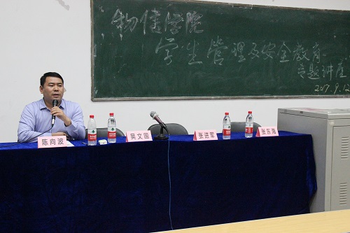 于05203教室举办了学生管理及安全教育专题讲座,院党委副书记陈向波作为主讲人,17级全体新生共283人参加了讲座。