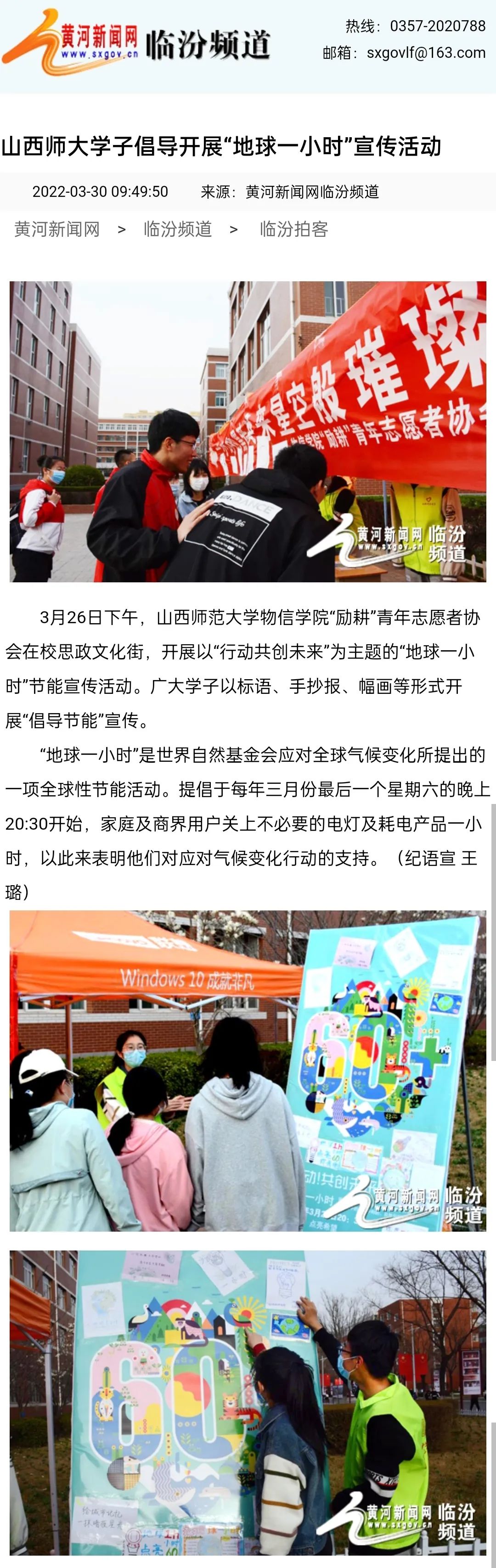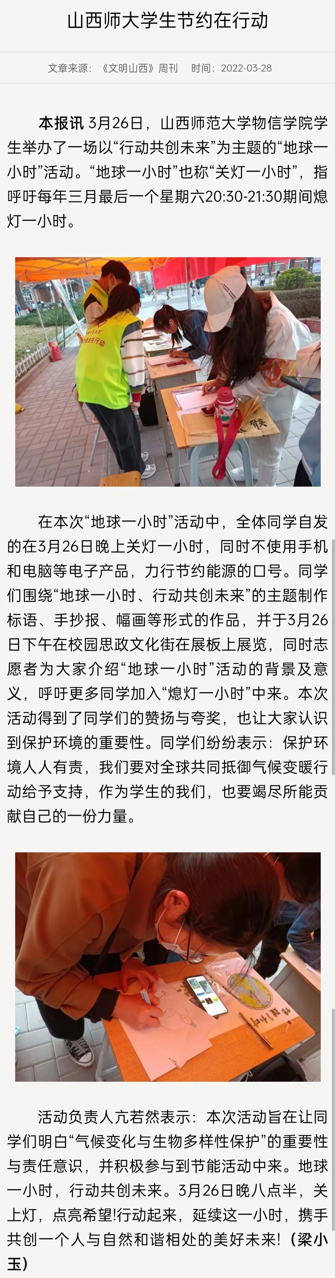 文明山西网、黄河新闻网报道黄色漫画 开展“行动共创未来”为主题的“地球一小时”活动