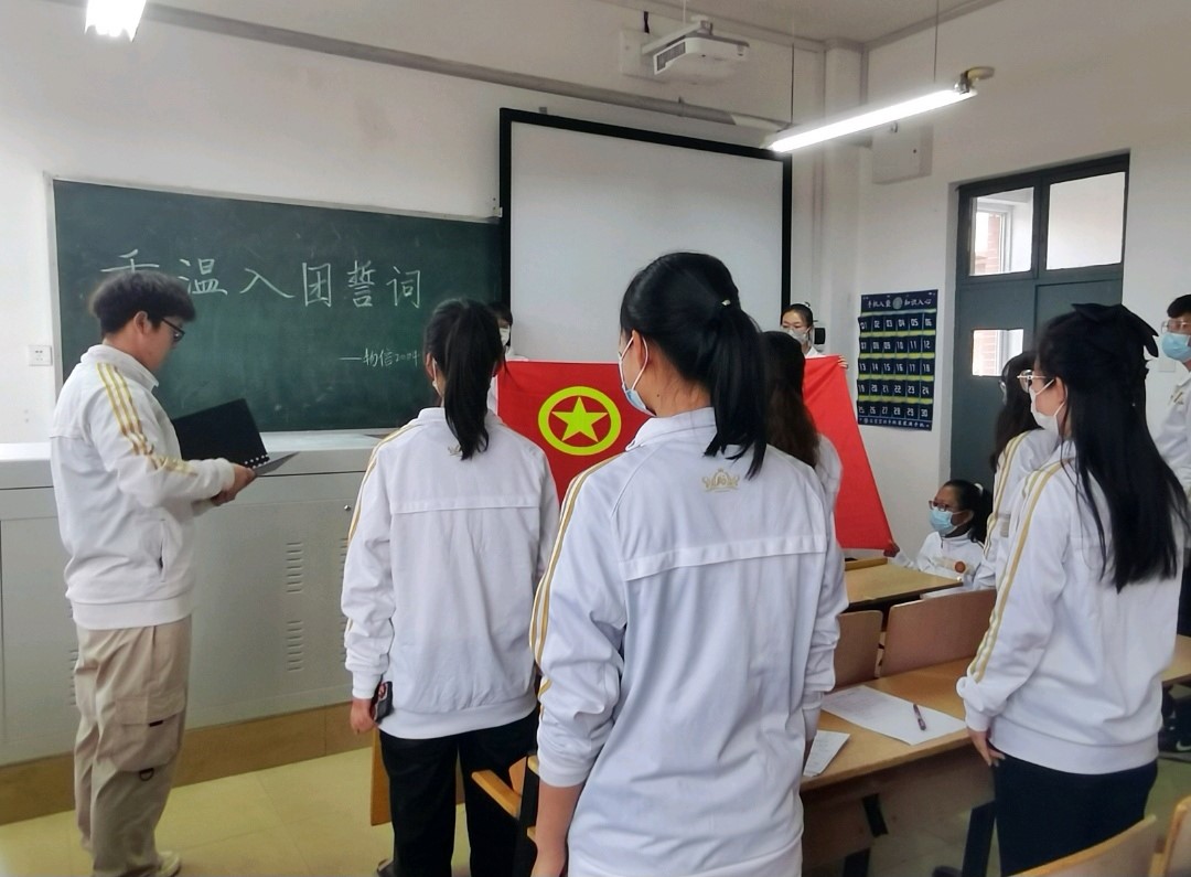 活动中,在团支书王文慧的带领下,全体团员面对团旗、右手握拳,重温入团誓词,声音整齐有力,表明了支部成员一心向团的决心。全体团员齐唱《光荣啊,中国共青团》,用嘹亮歌声献礼建团百年、迎接五四青年节。随后,支部成员邢琳琳向大家分享了她为先辈们写的一封信,向先辈们诉说今日中国之盛世、今日青年之奋进。活动最后,共青团员张馨月总结道:百年栉风沐雨,共青团始终坚定不移跟党走,团结带领共青团员和广大青年,前赴后继,勇当先锋,书写了中国青年运动的华章!
