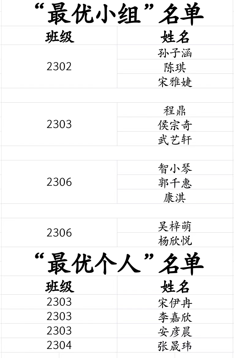 附:“最优小组”、“最优个人”名单(文/2308班 张振宇 摄/2306班 薛妙青)