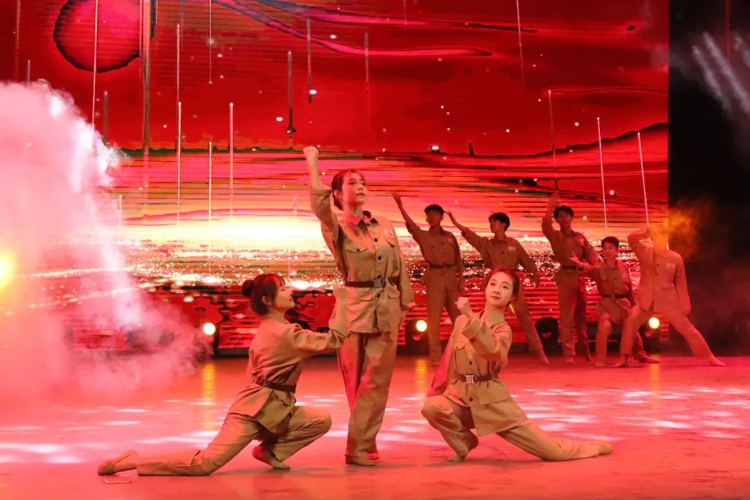 音诗画《红铁》动人心扉的语言下,晚会进入第一篇章——思想火花。群舞《英雄赞歌》、话剧《战火中的大学生》描述了战争时期无名英雄们的光荣事迹。歌曲《一荤一素》、诗歌朗诵《我相信》以及唢呐舞蹈《秧歌》展现了如今平淡幸福的美好生活和对祖国未来的无限期待。