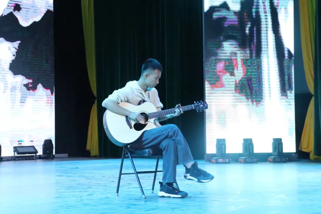 吉他独奏凭借爽朗悠扬的歌声,将晚会拉入第二篇章——闪亮新生。歌曲《突然好想你》《天外来物》、京剧《霸王别姬》选段《舞剑》、舞蹈串烧《舞舞相约》以及2017级校友翟艺钦友情演唱的歌曲《歌曲荒漠上行走》《河流》再一次将晚会的氛围拉向高潮。同学们用悠扬动人的歌声、扎实的京剧功底、富有节奏感的舞步,表达了对2023级新生的欢迎与祝福,鼓励同学们要胸怀理想,肩负重任,不负韶华。