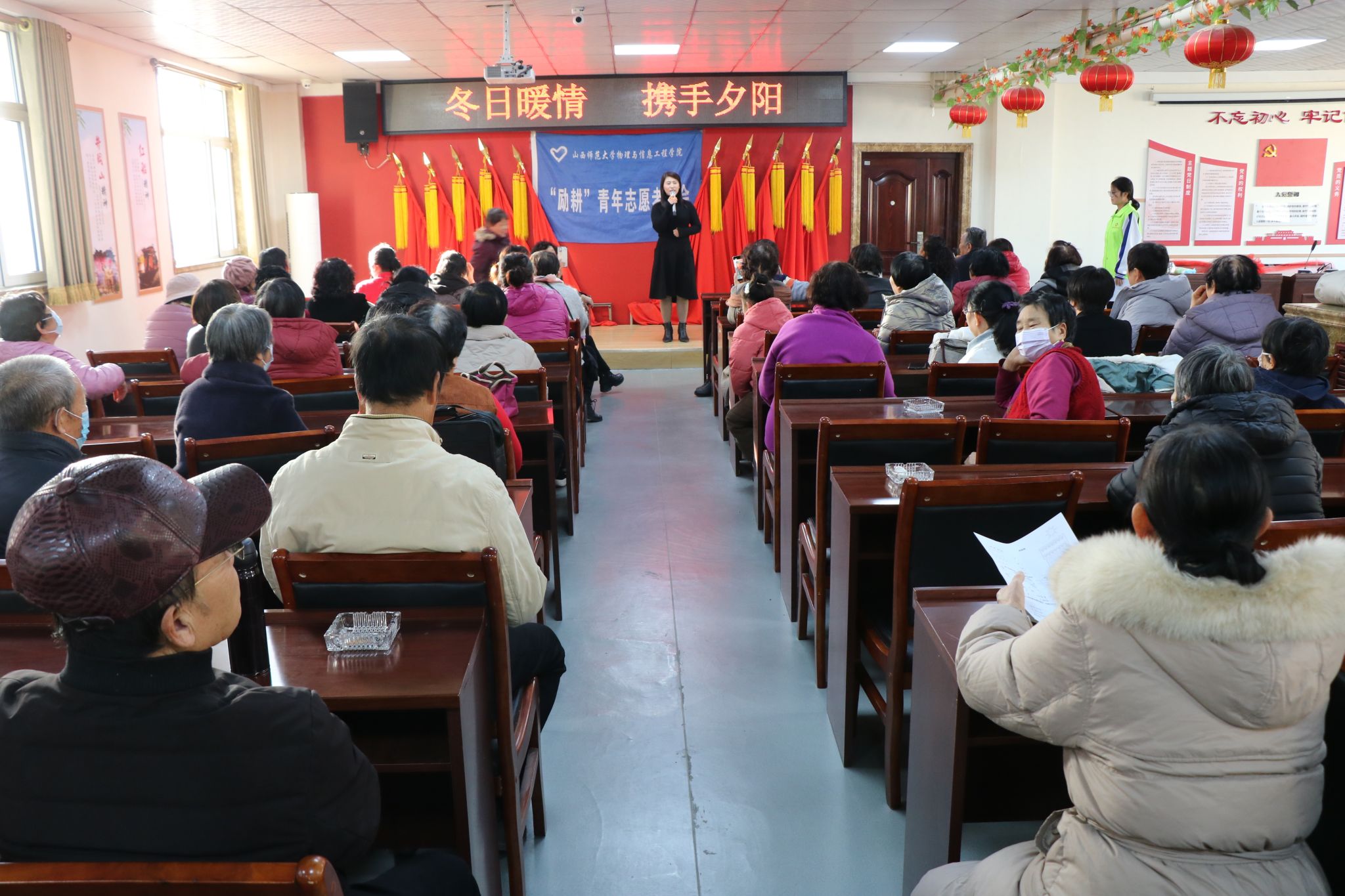 为弘扬中华民族尊老敬老的优秀美德,营造浓厚的爱老敬老的氛围,11月25日下午14:30,院“励耕”青协在秋村村委会开展“冬日暖情,携手夕阳”秋村助老外出实践活动,活动由青协志愿者段佳琳主持。