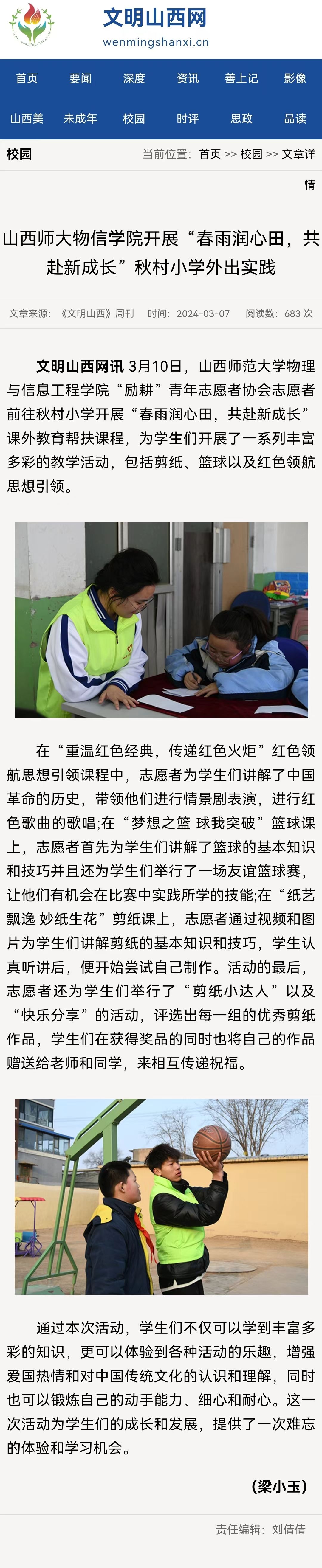 文明山西网报道黄色漫画 “励耕”青协“春雨润心田,共赴新成长”教育帮扶实践活动