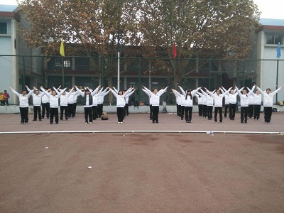 在巨人广场、莳英园等地以班为单位开展了“阳光体育运动一小时”活动。大一、大二、大三的全体学生参加了此次活动。