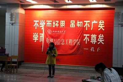 通过学院微信公众平台、微博以及宣传海报上对活动进行了大力宣传。其中,共有36位选手通过前期报名参加了本次比赛。选手们简单明快的曲调,精心编制的歌唱形式,不同的风格,不同的曲调,都调动了在场观众热情的气氛。同时,选手们镇定自若对歌曲的演绎和台上自然的表现,展示了他们不凡的实力,也表现出了大学生朝气蓬勃的精神面貌和精湛的艺术感染力。观众们的呐喊,助威,让现场整个的气氛达到了沸点!