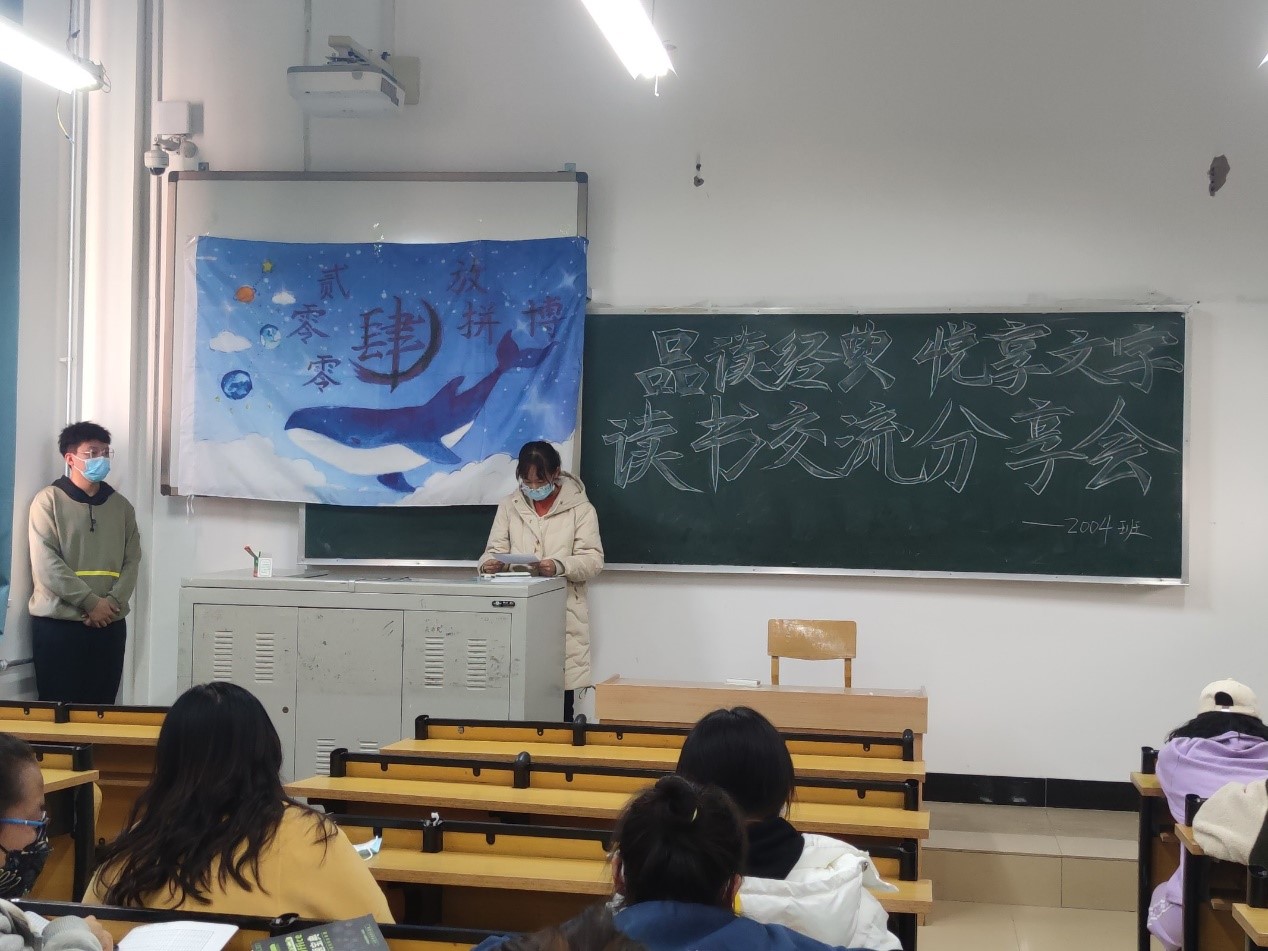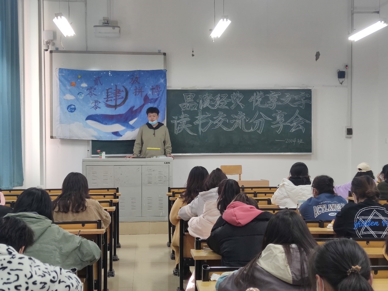 2004班于南区五号楼5201教室开展了第一次读书交流分享会。本次活动由班长王泽辉主持。