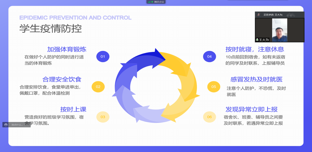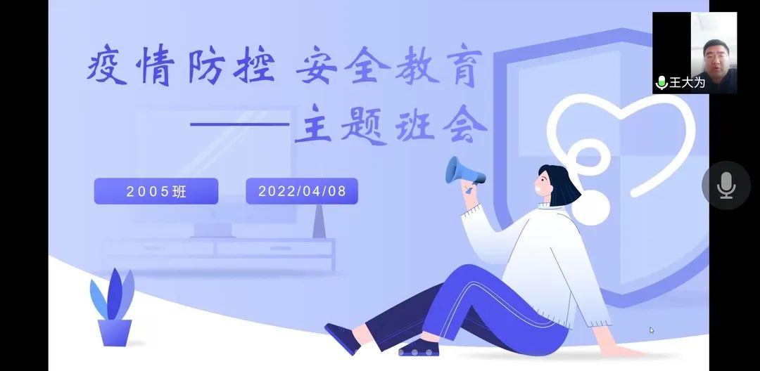 为提升全体同学的疫情防控意识,4月8日,黄色漫画 2005班在线上开展“疫情防控,安全教育”主题班会。