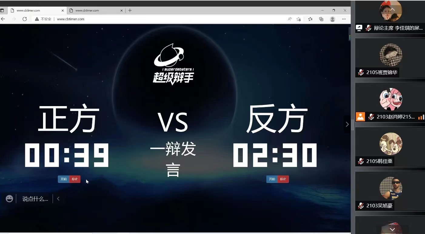 活动以线上辩论赛的形式展开。活动中,两个团支部分别派出四名成员组成正反方队伍,辩手们以“体育明星偶像化是体育发展之幸还是之悲”为题展开辩论。立论环节,双方一辩结合体育明星在偶像化的现象条理清晰、富有逻辑地表述了个人的观点。攻辩环节,选手们妙语连珠、舌枪唇剑、互不退让,场面一度到达高潮。活动最后,2105班团支书贾镕华在总结中强调,体育是一个非常容易产生“英雄”的行业,“英雄”受人们追捧,自然而然就成为了“明星”,我们应当理性看待问题,我们应该学习他们身上拼搏、奋斗和不断超越的优秀品质,努力学习、积极奋进,树立坚定理想信念,努力成长为堪当民族大任的时代新人。