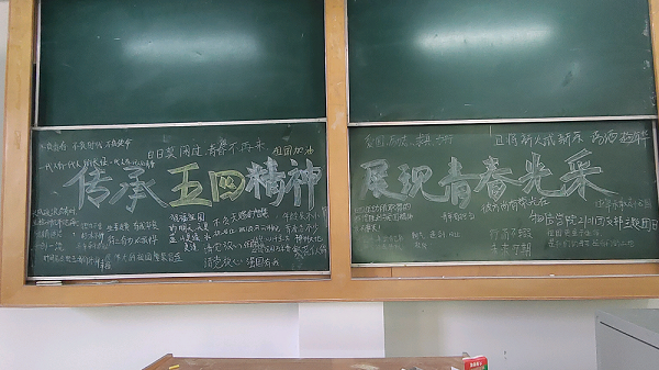 2101团支部组织同学们在黑板上写下自己对党、祖国、共青团的祝福寄语,2106团支部组织全体支部成员在纸上写下对团的祝福寄语,并将纸折成飞机集体放飞,既是对团的祝福也是对自己的希冀。通过这样的方式,表达了对团的热爱,加深了同学们对五四运动精神的理解。