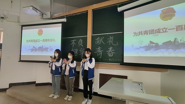 2104团支部组织同学们以朗诵的形式为中国共产主义青年团成立100周年献礼,2103、2105团支部组织全体支部成员合唱红色经典、重温革命先辈精神。通过这些声音,弘扬了五四精神,坚定了理想信念,体现了同学们的爱党爱国情怀。