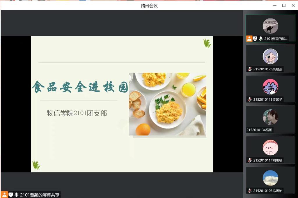 2101团支部带领同学们进行了为期一周的线上光盘打卡活动,同学们都积极打卡,做到了节约粮食从每天、从点滴做起。在活动中团支书还带领同学们学习了一部分《食品安全法》,让同学们对食品安全有了更加详细的了解。