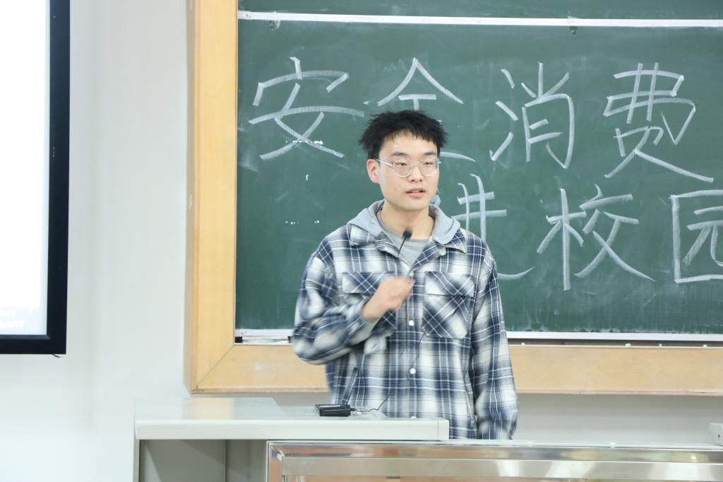 活动分为案例分析、问卷调查、知识竞答三个环节。贾强结合PPT向大家介绍了消费者应有的权利,解释了自我维权的重要性。他还邀请部分志愿者通过案例阐述如何识破骗局以及发现被骗后正确维护自己合法权益的方法。在知识竞答环节,同学们积极回答有关消费维权的问题,营造了热烈的活动氛围。