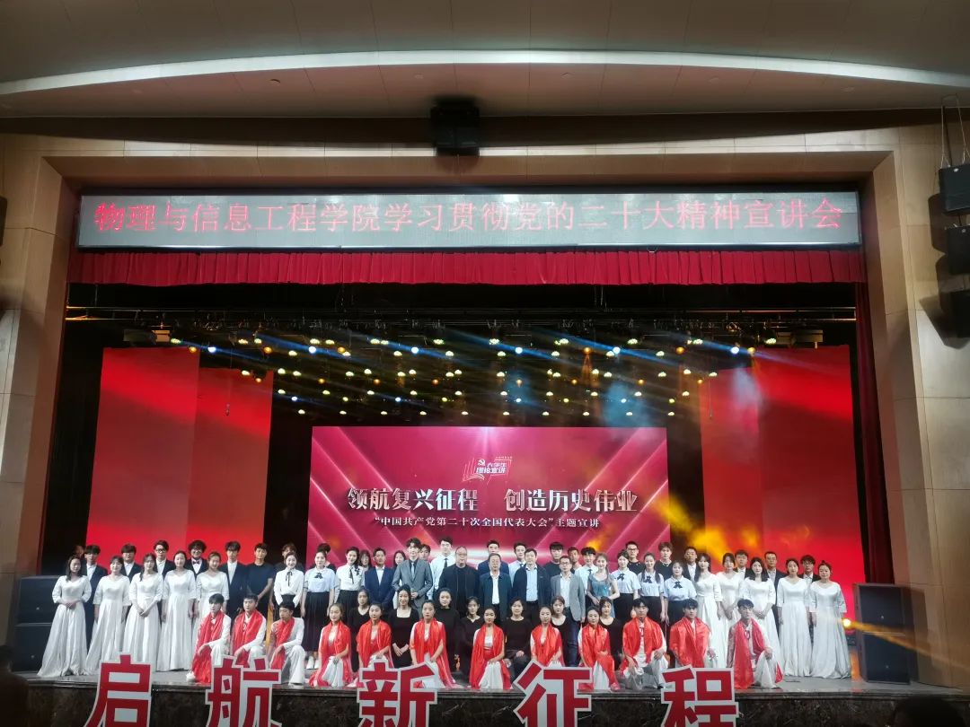 3月22日下午,黄色漫画 邀请大学生理论宣讲团在北区文化艺术活动中心开展学习贯彻党的二十大精神宣讲会,校学生工作部部长王银、校党委宣传部副部长艾炬、院党委副书记颜志刚、副院长侯俊华出席了宣讲会。