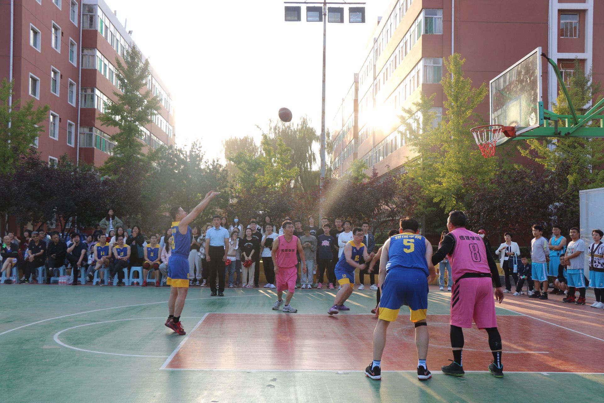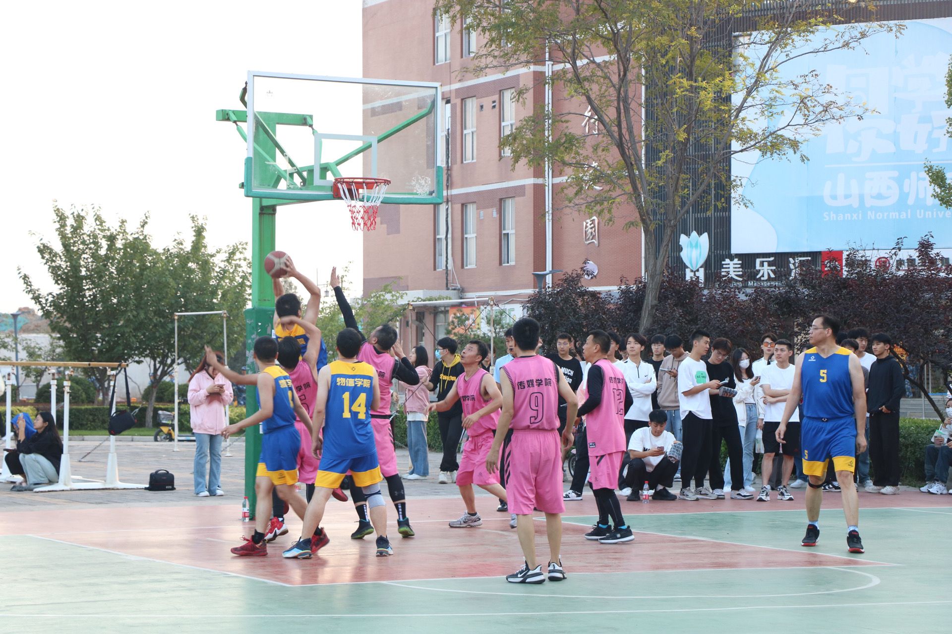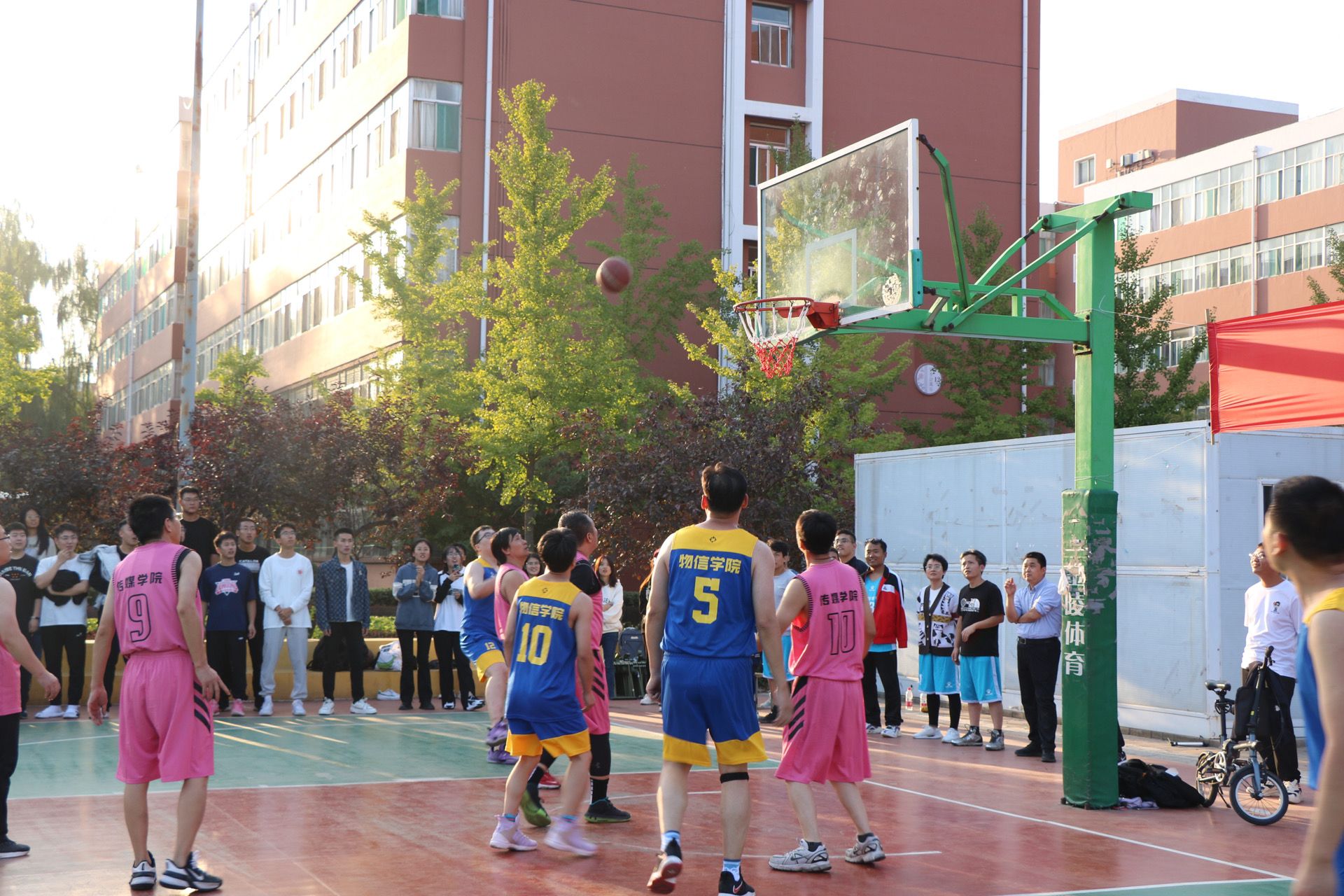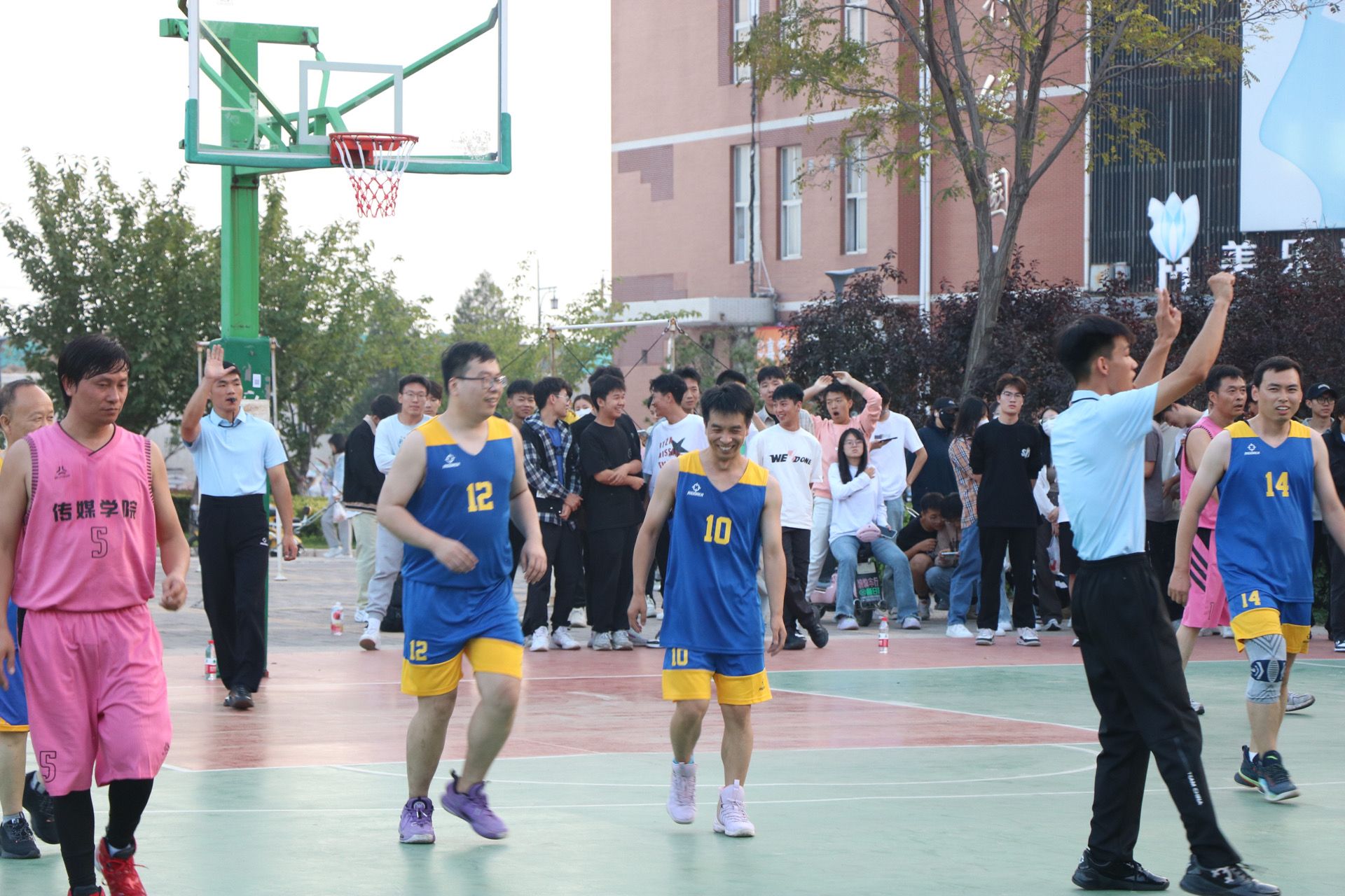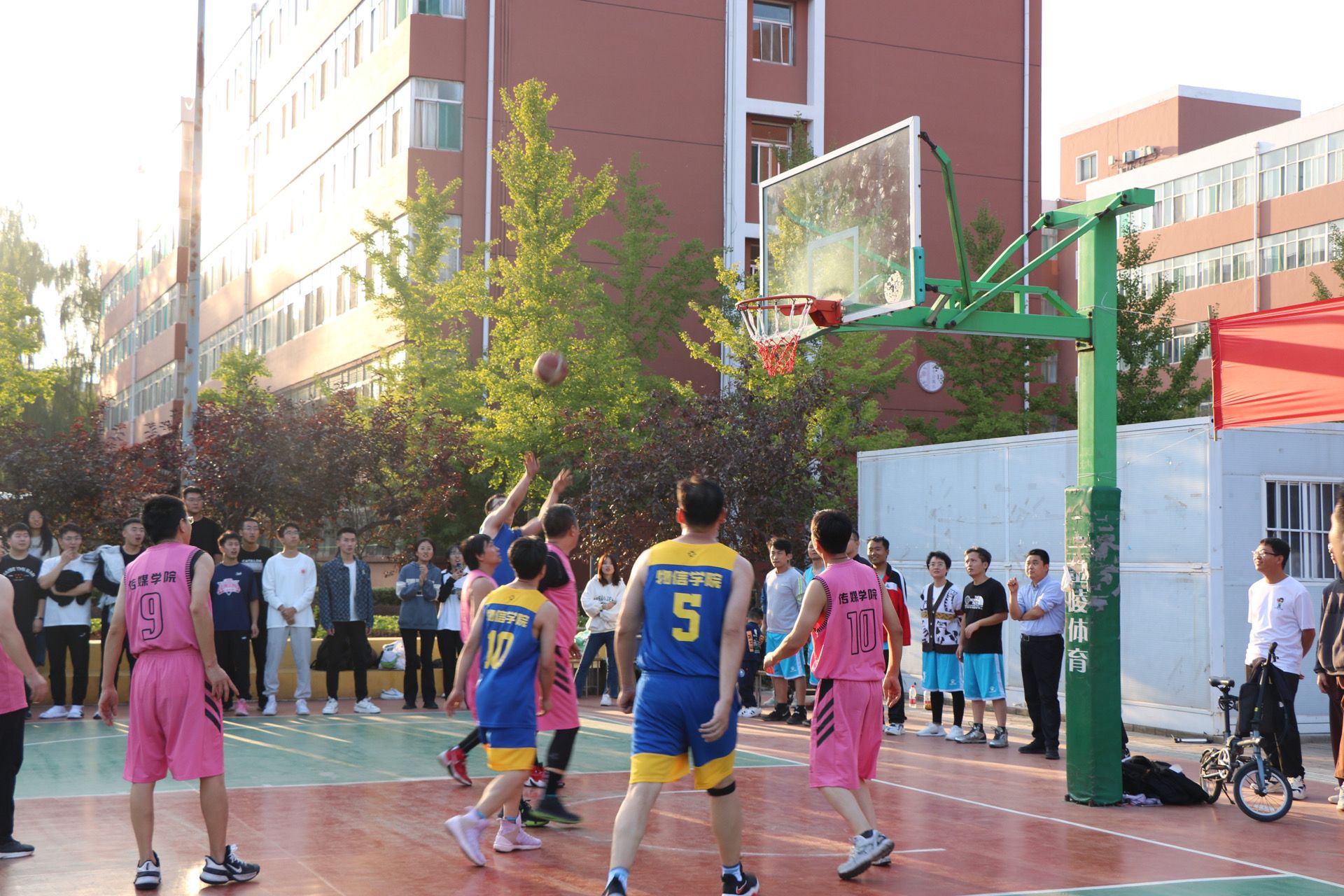 9月26日,我校第十二届“园丁杯”篮球赛拉开帷幕,黄色漫画 教工与传媒学院教工于科学会堂前篮球场展开了一场精彩十足的比赛。