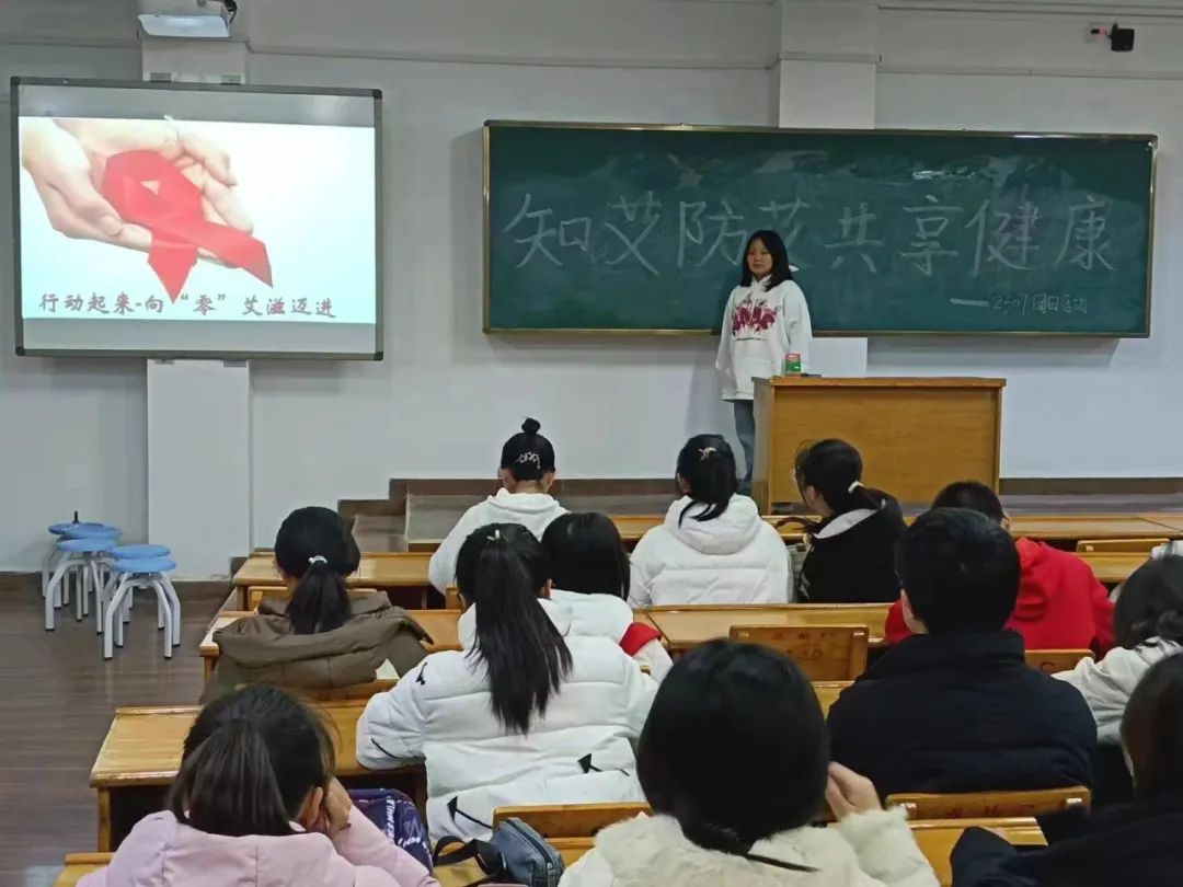 活动伊始,李诗雨进行了预防艾滋病的知识讲解,增加同学们对艾滋病的了解与防护。随后开展了“用心呵护生命,行动抵御艾滋”的征文活动,通过写征文让大家进一步了解与艾滋病有关的内容,学会用正确的心态去对待艾滋病。接下来的“增长见识,学会预防”活动,给大家播放了与艾滋病防护有关的宣传片,进一步加强了同学们对艾滋病患者的关怀意识。最后组织同学们进行“知艾防艾,共享健康”知识竞赛,通过知识问答,并由团小组成员马楠熙讲解,让同学们在活跃的气氛中学习到更多与艾滋病有关的知识,真正地做到艾滋病预防知识入脑、入心。