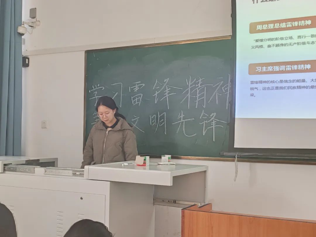 2205班团支部举办了猜数字小游戏,猜到数字的同学分享一件学习雷锋的事件;2209班团支部由新发展团员举行了演讲《生命,因奉献而精彩》。通过这些活动,同学们更深入地了解雷锋的生平和乐于助人的故事,并发现了很多生活中的“小雷锋”,弘扬了雷锋的优秀品质,为大家树立正确的榜样。