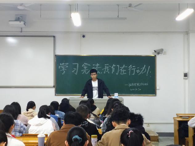 1903班于10月20日在12208教室开展了“学习宪法,我们在行动”主题班会。此次班会由班长吴培清主持。