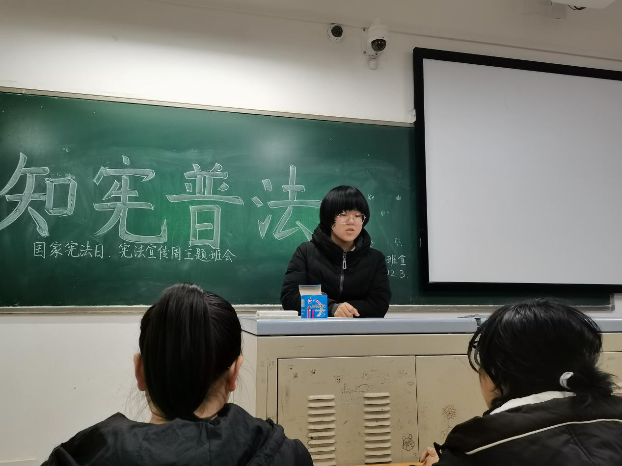 活动中,刘禹为同学们讲解了宪法日的设立时间以及意义。苏云俊向同学们介绍了宪法的根本地位和基本框架,并强调了知宪守宪的重要性。同学们就宪法与自身的关系展开了讨论,进一步认识到了宪法的地位以及学习宪法的重要性,大家纷纷表示会认真学习宪法、严格遵守宪法,为推进依法治国,建设现代化法治强国贡献自己的力量。(文/2003班 刘禹 摄/2003班 危灵琰)