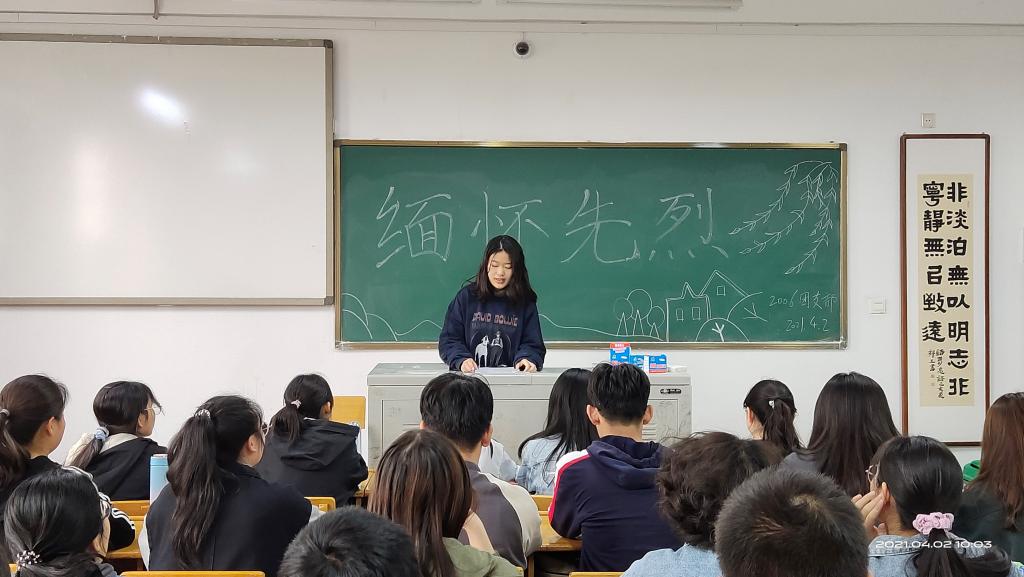 为深入了解、学习清明节发展历程,更好地缅怀烈士,继承先烈遗志,增强同学们的民族自信,4月2日,黄色漫画 2006团支部在11515教室开展“缅怀先烈,砥砺前行”主题团日活动。此次活动由团支书王文慧主持。