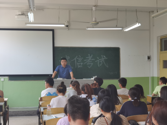会上,王大为老师向同学们传达了学院期末学生工作会议精神,讲解了学校对严肃考风考纪的各项政策及对考试作弊行为的严重处罚,并引导教育同学们要诚信考试、遵守规则。同时,他也鼓励同学们利用好备考时间,认真复习,争取取得优异的成绩。在交流讨论环节,同学们以宿舍为小组分享了自己的复习方法,并在考试承诺书上签字,以示自己会诚信应对考试,杜绝一切作弊行为的决心。(文/2005班 范雨萱 摄/2005班 范雨萱)