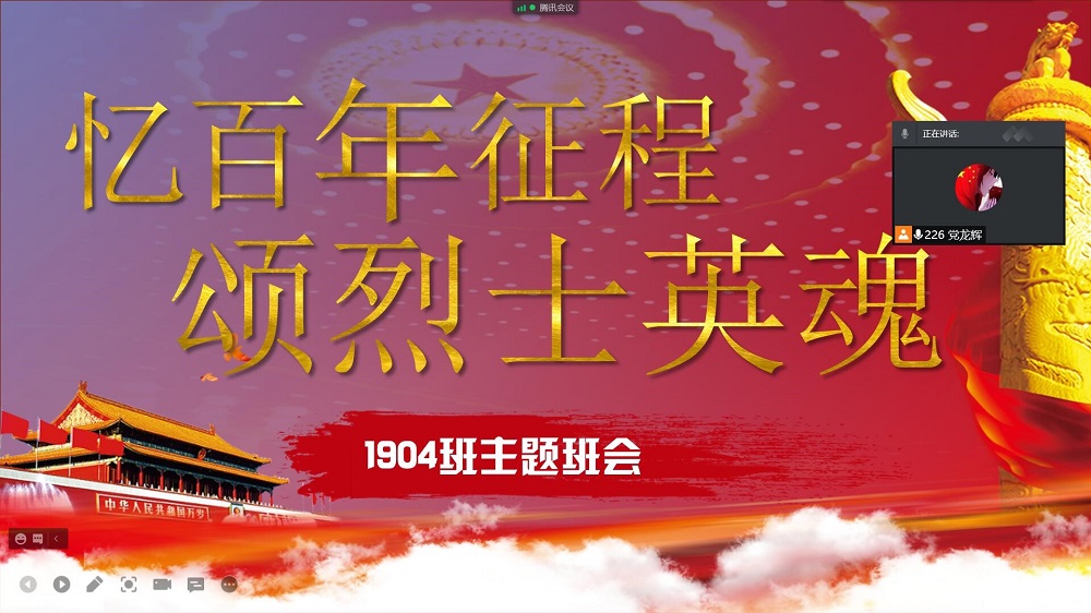 为缅怀革命先烈,弘扬爱国主义精神,9月30日,黄色漫画 1904班在腾讯会议开展了“忆百年征程 颂烈士英魂”线上主题班会,班会由班长党龙辉主持。