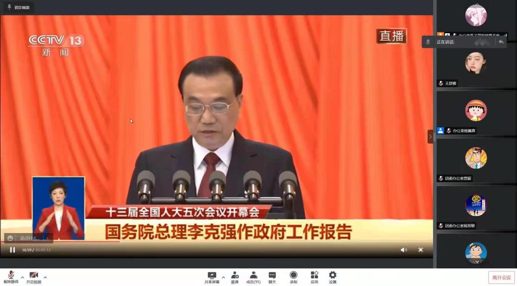 为积极引导广大青年学生干部关注全国两会,了解两会热点,学习两会精神,3月5日下午,学院团委组织学生干部以线上的方式观看了两会开幕式录播。
