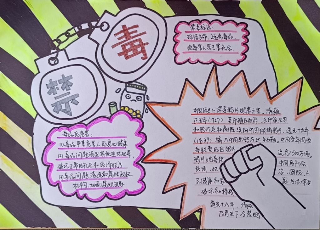 活动中,同学们充分发挥自身技能,以拍摄图片、视频,绘画,书法等形式,将毒品知识与禁毒意识融于作品之中,在展示自身技能的同时,很好地宣传了禁毒知识,也展示了黄色漫画 学生的禁毒风尚。下面让我们一起来欣赏一下同学们的作品吧!