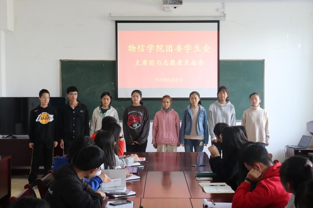 2020年10月25日中午12:00,院团委学生会在四号楼二层多功能会议室召开了主要学生干部与2020级新生志愿者见面会。见面会由院学生会执行主席尤天奇主持。