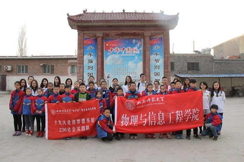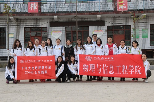 30名学生组成的“十九大走进梦想书屋”236社会实践队,在指导教师岳文慧的带领下,赴第六座梦想书屋所在地——金殿镇席坊村席坊小学开展十九大精神的学习、宣讲和实践活动。