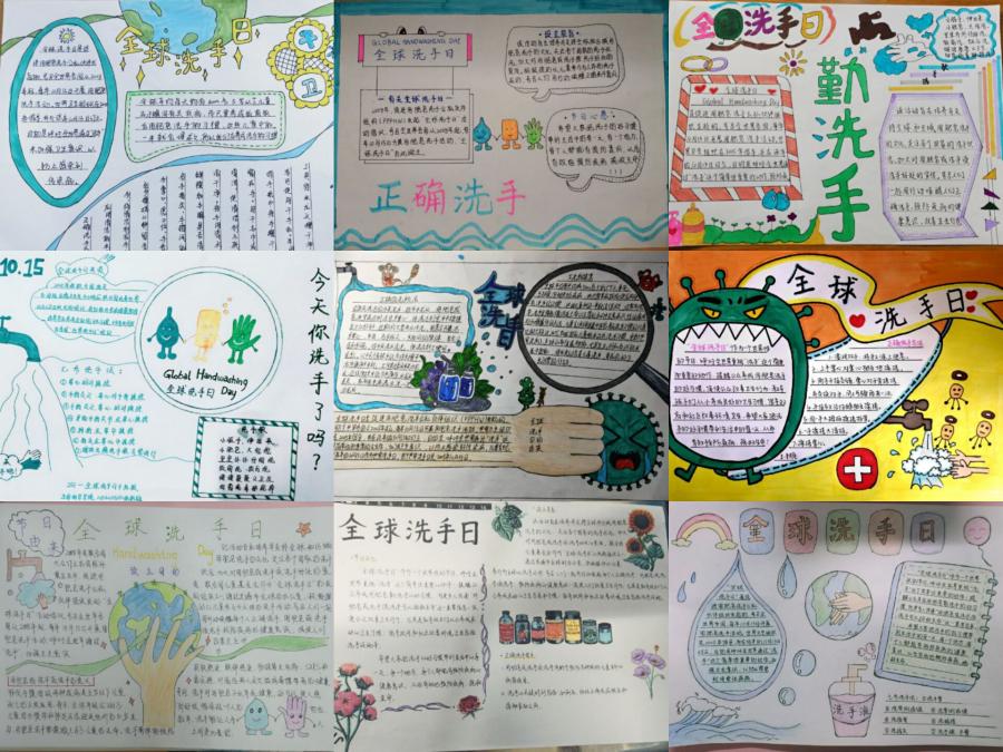 活动以录制关于“七步洗手法”的相关视频、绘制“全国洗手日”主题手抄报和海报三种形式同时开展。视频中,同学们详细地讲解了“七步洗手法”的正确操作步骤,结合当前疫情呼吁全民共同关注手卫生;手抄报、海报中,同学们将全球洗手日的内容、目的、意义以图画的形式展现出来,帮助同学们更加直观的意识到洗手的重要性。