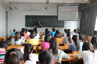党委副书记陈向波支持。刘玉斌院长在报告中介绍了粒子研究最前沿的研究概况,在介绍19、20世纪的科学家时,告诉同学们要夯实基础,耐得住寂寞,扛得住压力,能够不怕辛苦,这样才能在布满乌云彩虹的21世纪取得一番成绩。随后简要介绍了南开的物理科学学院基本情况、研究生招生情况及暑期夏令营计划。报告结束后,刘玉斌院长与在场的60多名同学进行了现场交流,刘玉斌院长对同学们提出的考研方面的问题均予以耐心一一解答。报告在热烈的掌声中圆满结束。