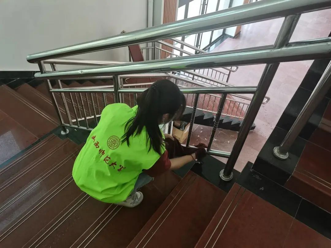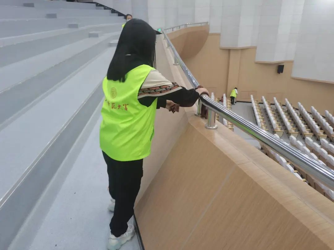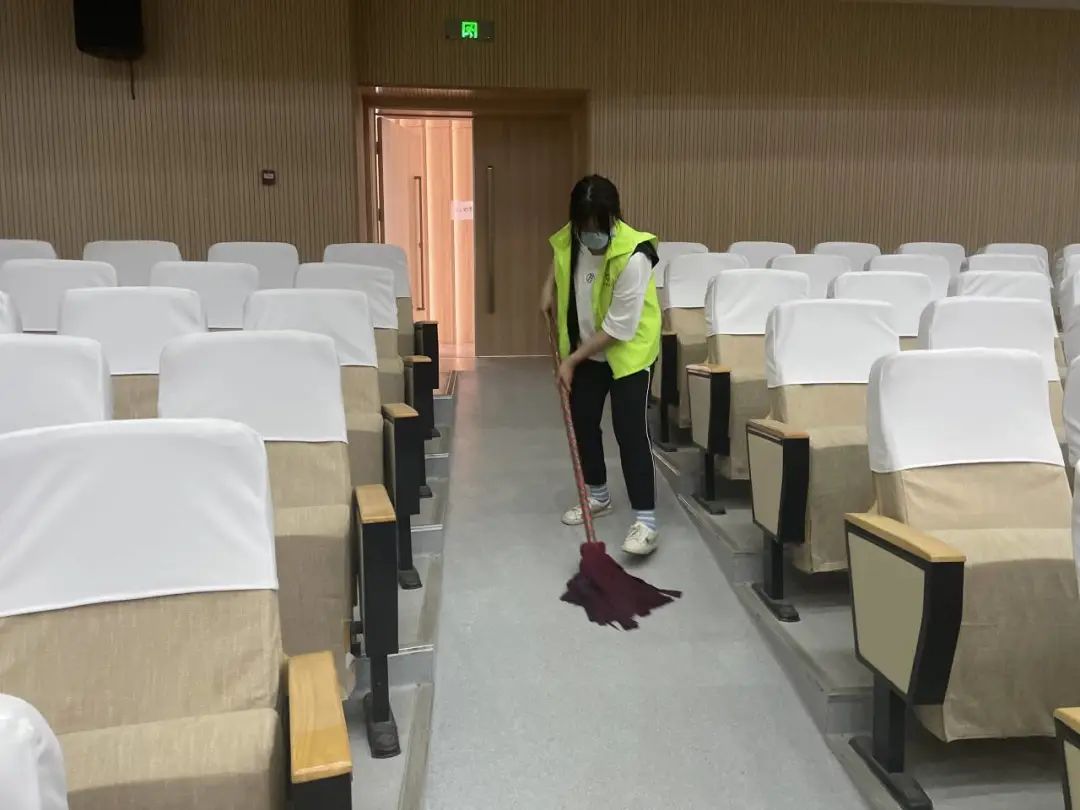 活动中,志愿者们分工明确、互相配合,发扬不怕脏不怕累的精神,细心地清扫纸屑、清理垃圾、擦拭桌椅扶手,并用拖布清洁了报告厅的舞台。在志愿者的共同努力下,场地被清扫得一尘不染。一位参与活动的志愿者表示:虽然过程很辛苦,但是看着自己的劳动成果觉得很满足,也希望能有更多同学加入爱护校园、爱护环境的队伍中来,把校园变成一个美丽整洁的大家园!