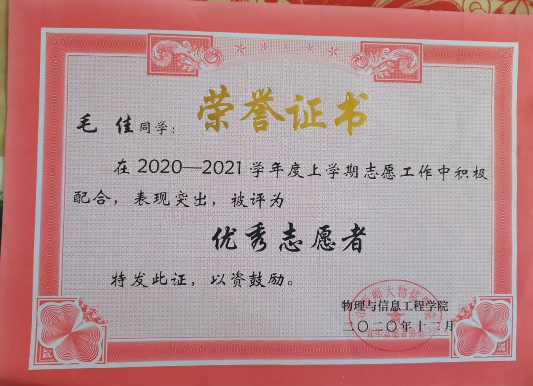 2020-2021学年度院级优秀志愿者