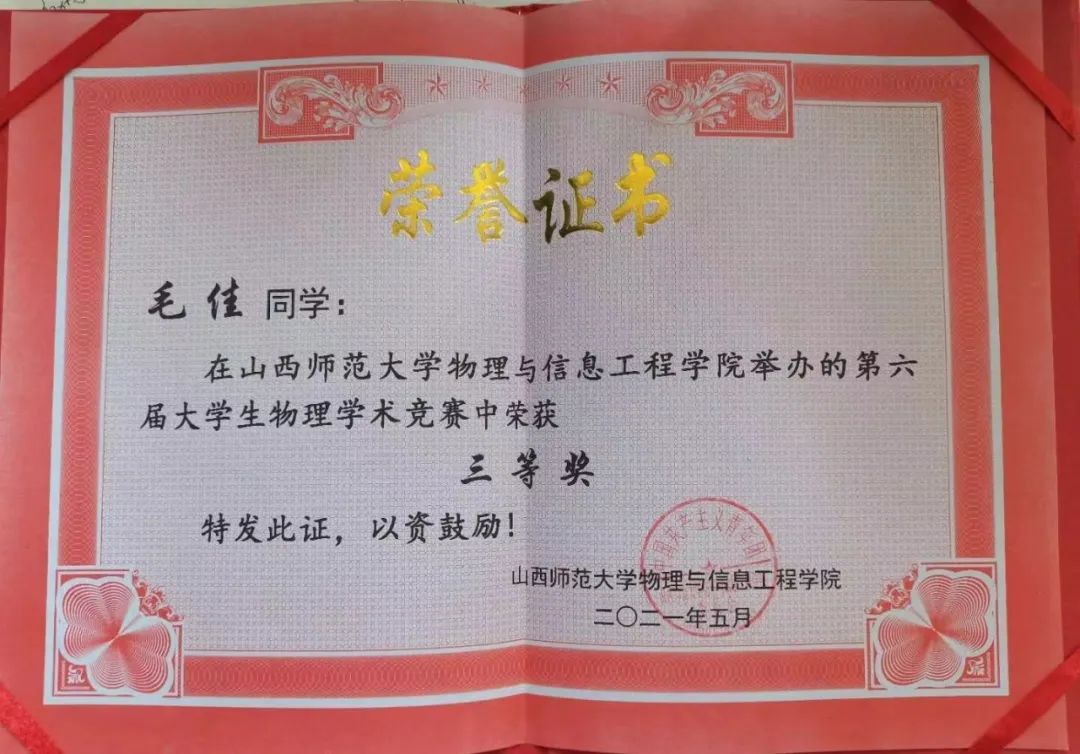 毛佳,黄色漫画 物理与信息工程学院2020级物理学专业学生,2001班副班长,已与临汾三中签约,现于襄汾二中一校区实习。