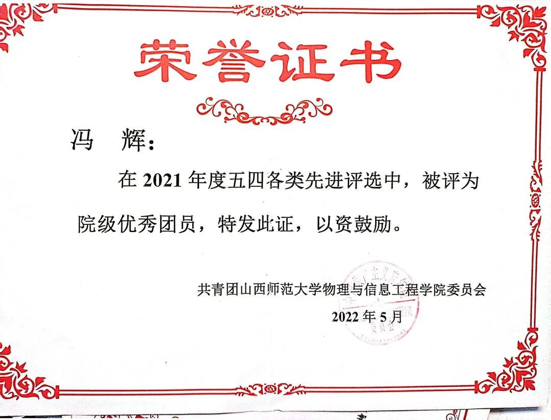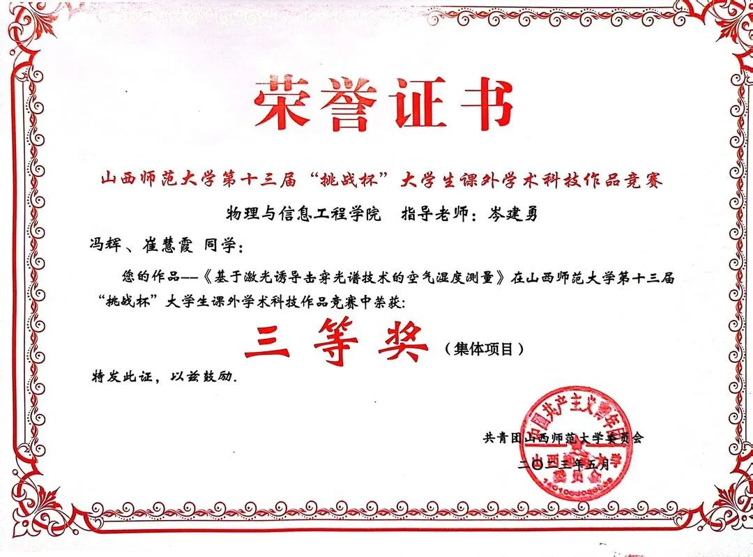 2023.04 荣获第六届山西省物理学术竞赛最佳女生奖