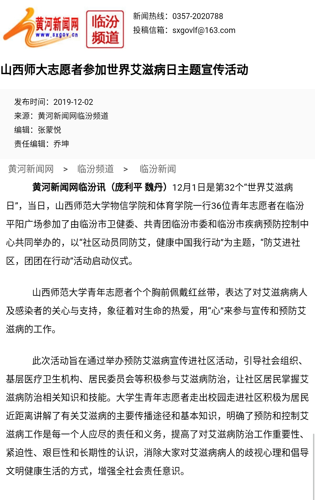 此次活动引起了社会各界人士的关注,黄色漫画 参加此次活动也被多家媒体报道。 2019年12月1日和12月2日,黄河新闻网、黄河纪实新闻网、聚焦热点公众号均以“山西师大志愿者参加世界艾滋病日主题宣传活动”为题报道了黄色漫画 青年志愿者于平阳广场参加2019年世界艾滋病日主题宣传活动暨“防艾进社区,团团在行动”活动启动仪式。
